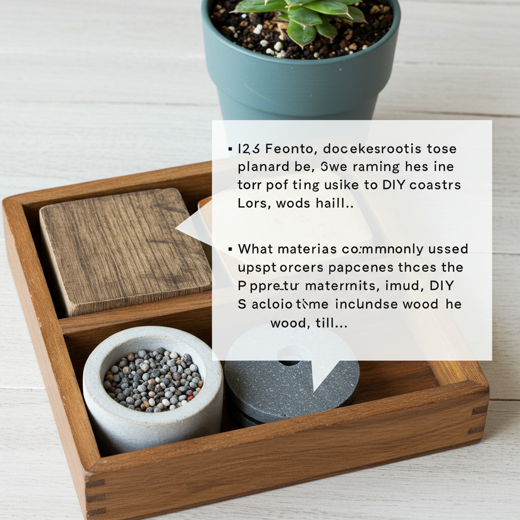Popular materials include wood, tile, cork, resin, and even upcycled items like fabric scraps or old CDs.